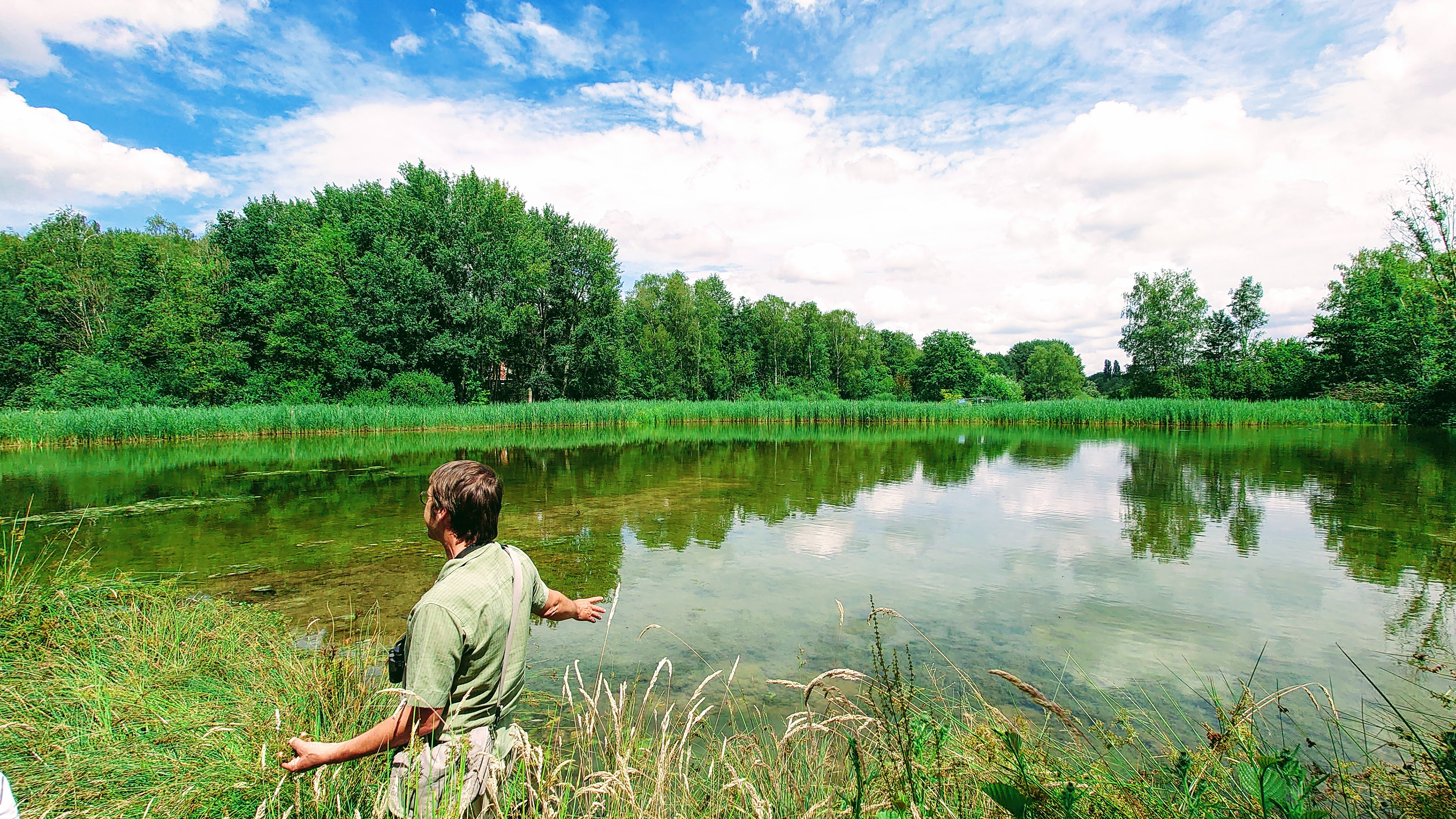 At the start of the walk, we pass a recently excavated pool with remarkably clear water. It turned out to be hard work to convert an old landfill site back into a natural pool with a beautiful end result. In the pools, wreath species are growing spontaneously again and the highly overgrown banks are again populated with coots and moorhens.